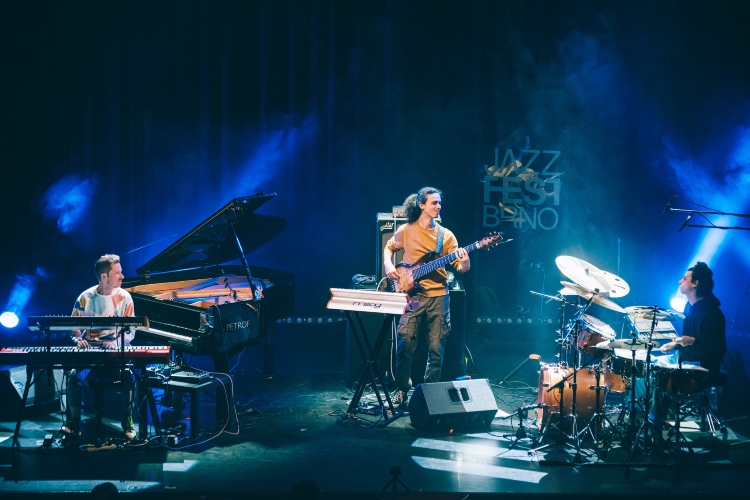 His twelve tracks clock in under forty-five minutes in total. In the leadoff, “Open Sesame,” acoustic piano chords soon give way to a dizzying blur of electronics in the intro that lasts just over a minute. We get a pause before his trio mates enter, establishing a steady, hip-hop-like groove over which Pollack adeptly wraps acoustic, Rhodes, and synths. The piece sets the tone for the remainder of the album. “Birthday Song,” one of three singles, rests largely on joyous and melodic acoustic piano lines that are colored rather lightly relative to the others with electronics. It is all set to a more intricate rhythmic pattern, steered nicely by Marshall and Johnson. The second single, “Bop,” has Pollock engaged mostly with a full arsenal of electronics and keyboards, leaving Reynolds and Jennings to carry the bulk of the infectious riff. Reynolds proffers an aggressive improvised solo, after which Pollack pulls out all the stops. The piece then morphs into spacey, ethereal territory before reaching an abrupt close.