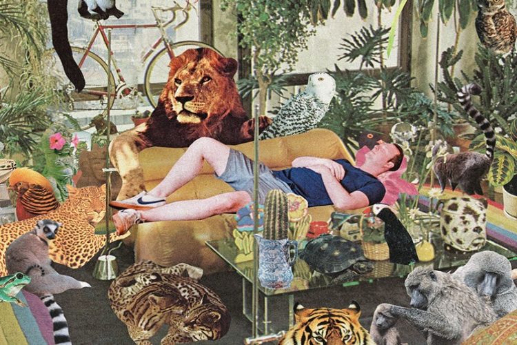 In both his striking visual art and his eclectic music, Ted Feighan engages in a collage making process. In the former, he does this by surrounding the natural beauty of exotic birds and flowers with vibrant colors and, occasionally, man-made objects like couches, cars, or buildings. In addition to their own artistic merit, they also serve as wonderful album art. His recordings – primarily issued under the name Monster Rally – similarly sample sounds from decades past and fuses them into a whole that is difficult to place in both locale and time. Due to Monster Rally’s aesthetics, some may mistakenly apply the label “exotica” or, due to his method, “instrumental hip hop.” And while influences of both are present, it is erroneous to box his sound into either, as it draws from both and many other concepts. Instead, he sees his sound as essentially forming a soundtrack for a vacation the listener has never taken. Even the Monster Rally name suggests something out of the normal, having been derived from a book by Charles Addams featuring his Addams Family characters. We had an opportunity to sit down with Ted to discuss his creative process, his inspirations, and Castaways Vol. 1 (Gold Robot Records, 2020), a collection of works that were not previously released on vinyl.